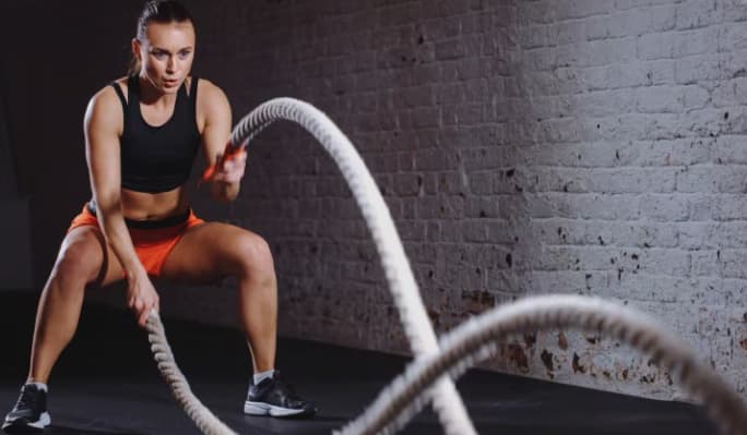 Das sind sehr lange Seile, und Sie wissen vielleicht nicht, wozu sie dienen, aber sie sind äußerst effizient bei der Fettverbrennung. Battle Ropes sind in der Regel für Intervalltraining konzipiert und 5 Minuten können über 50 Kalorien verbrennen, was sie zu einer sehr effizienten Übung zur Fettverbrennung macht. Trendig und effektiv, Sie haben es verdient, sie auszuprobieren!