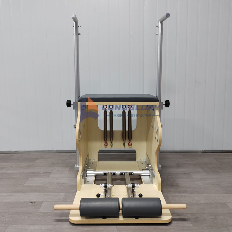 3. Pilates-Stuhl: Design Essence: Integriert ein Pedal, verstellbare Federn, rutschfeste Griffe und einen bequemen Sitz mit einem cleveren Design, das Funktionalität und Tragbarkeit in Einklang bringt. Trainingsschwerpunkt: Der Schwerpunkt liegt auf der Stärkung der einseitigen Gliedmaßenkoordination und des dynamischen Gleichgewichts, der präzisen Gestaltung der Hüft- und Beinlinien und der Tiefenaktivierung der Rumpfmuskulatur. Verwendungs-Highlights: Kompakt und platzsparend, besonders geeignet für den Heimbereich; Der flexibel einstellbare Widerstand passt sich verschiedenen Trainingsstadien an. Klassische Bewegungen: Step-up-Presse (Luftkissen) und einbeiniges Gleichgewichtstraining verbessern die Kraft der unteren Gliedmaßen und die Gleichgewichtskontrolle.