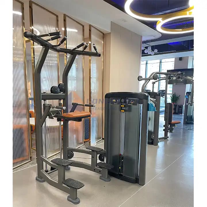 Dieses multifunktionale Pin Loaded Assist Dip Chin-Gerät trainiert effektiv den Latissimus, den Bizeps, den Trizeps, die Brust und die Schultern und ist somit eine umfassende Lösung für das Oberkörpertraining. Es ist kompakt und zuverlässig und eignet sich perfekt für kommerzielle Fitnessstudios, Fitnesscenter, Trainingsstudios und sogar Heimstudios, die professionelle Geräte benötigen.